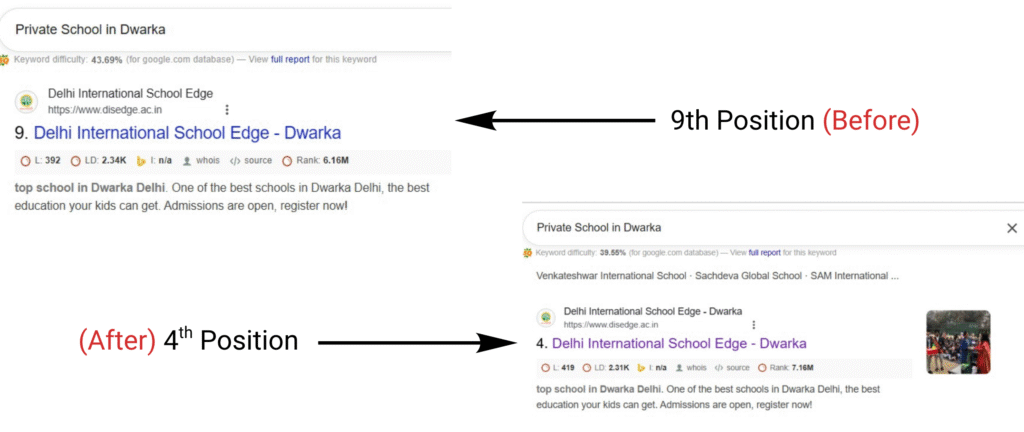While working on Delhi International School Edge, I improved its online visibility by tackling key SEO challenges such as high competition among Dwarka schools and limited keyword-focused content. I created detailed, optimized pages and enhanced technical factors like site speed and mobile responsiveness. Additionally, I strengthened local SEO through NAP consistency, local citations, and Google Business Profile optimization, helping the school rank higher for local education-related searches.