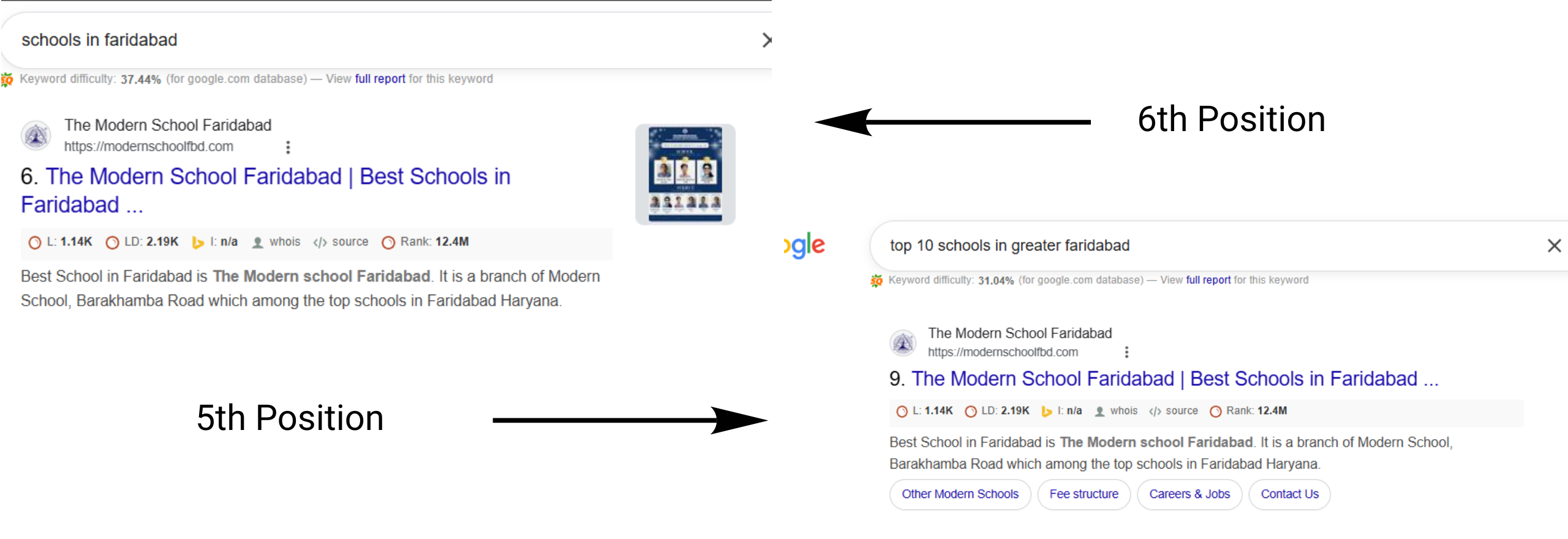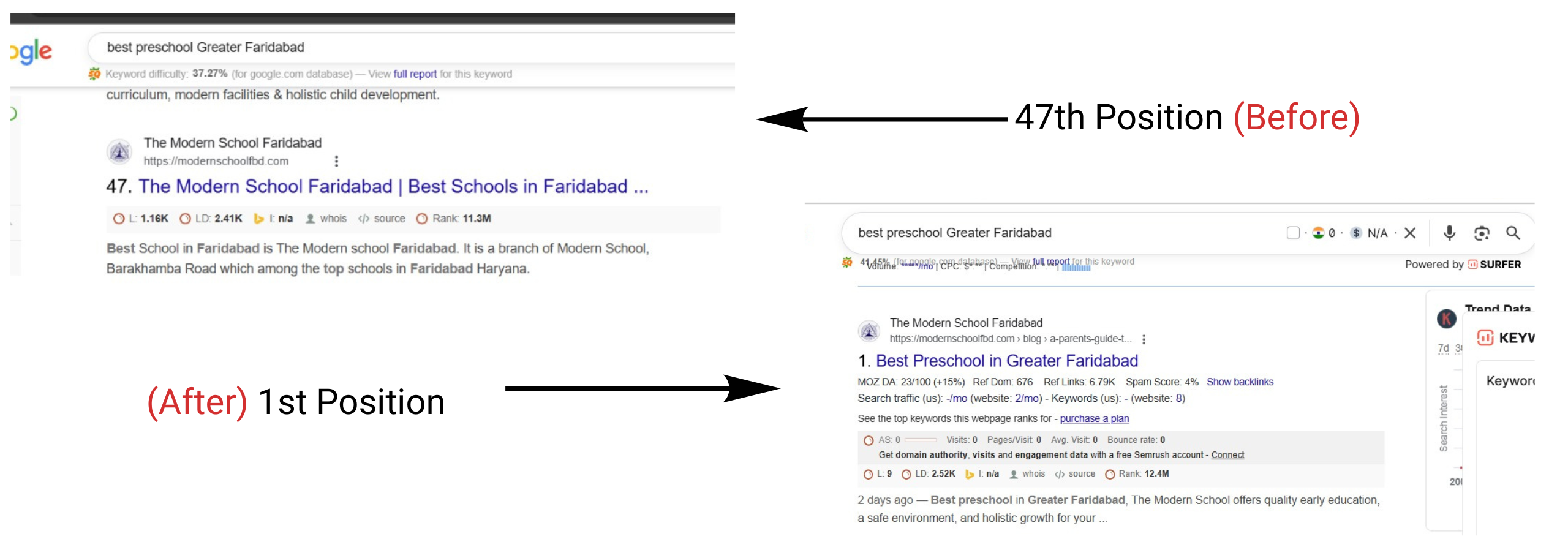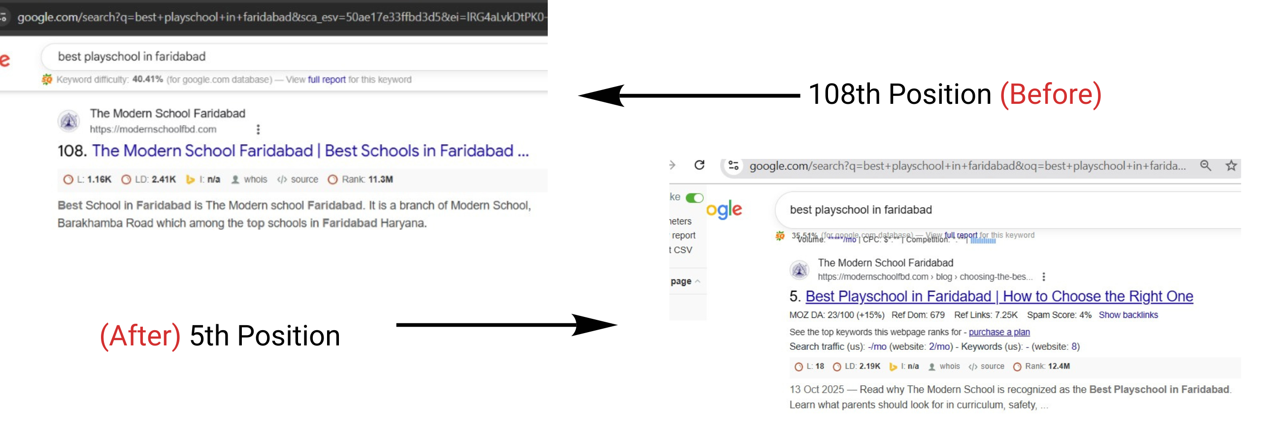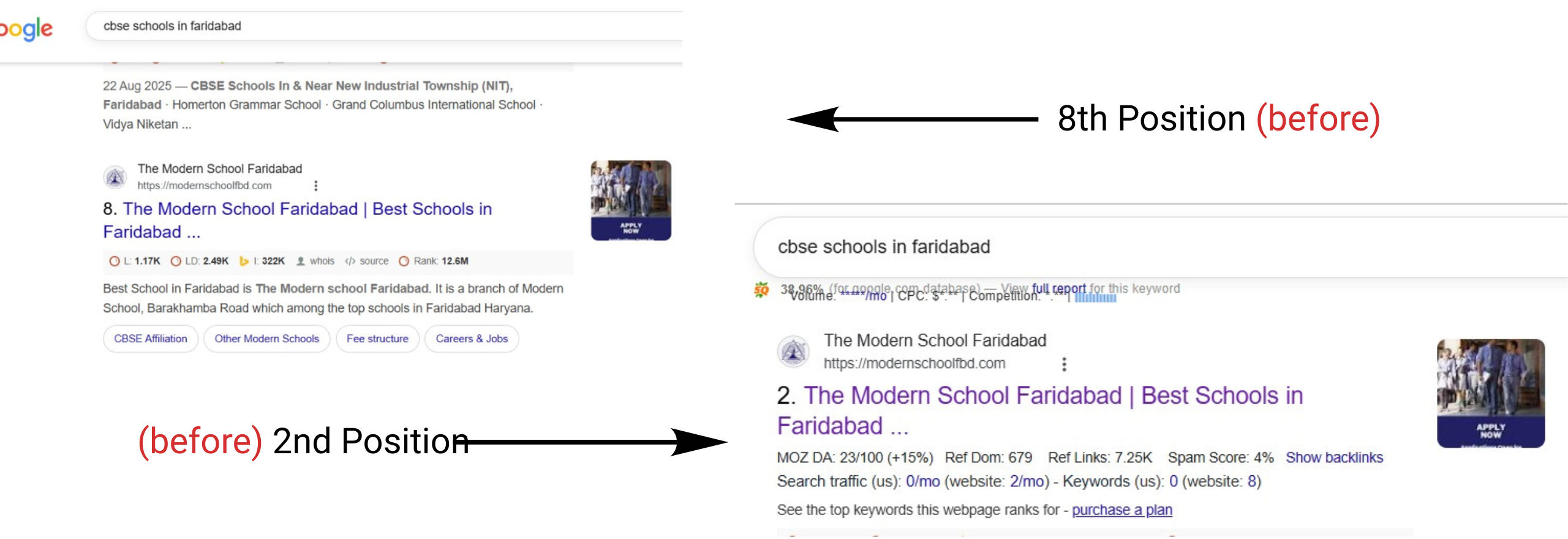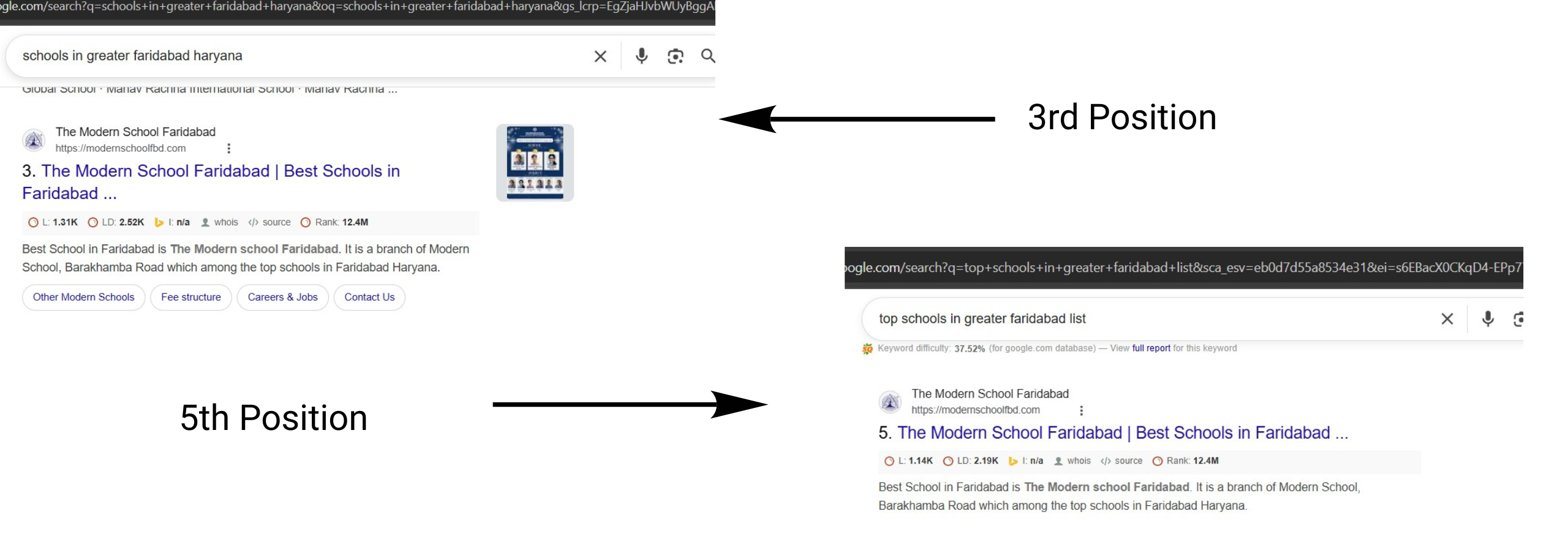 While working on The Modern School Faridabad website, I faced challenges such as high competition among schools in the Faridabad–Delhi NCR region and limited website content. I overcame these by creating keyword-rich, informative pages and improving technical aspects like page speed and mobile-friendliness. Additionally, I optimized local SEO through NAP consistency, local citations, and Google Business Profile enhancement, which helped the school gain strong visibility on local SERP results.